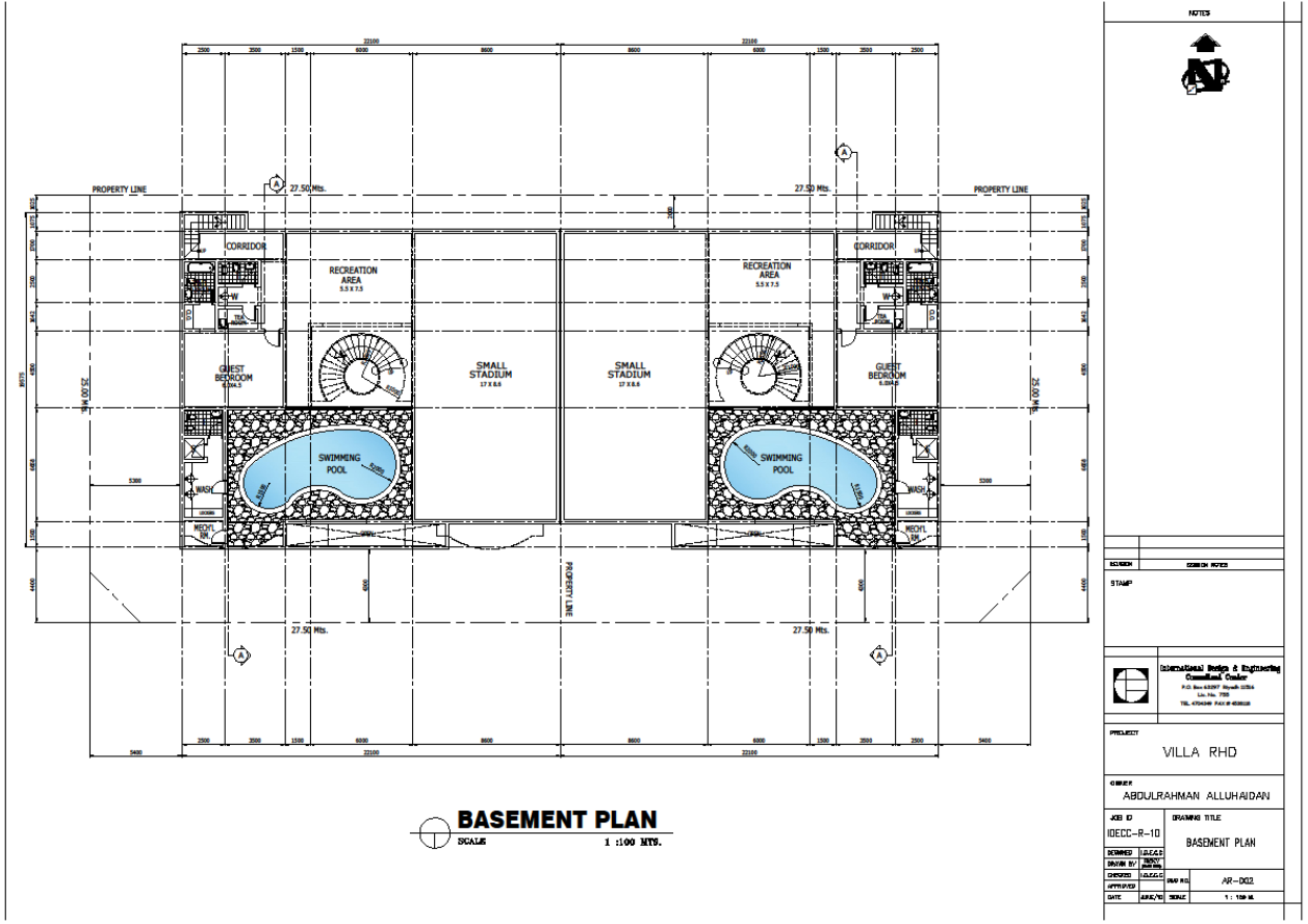 Abdelrahman Alluhaidan Villa Abdelrahman Alluhaidan Villa Abdelrahman Alluhaidan Villa Project Information Client Abdulrahman Alluhaidan Description It consisted four Floors( Basement , Ground, First and Roof annex ) the villa includeswimming pool. Project Location Riyadh – Saudi Arabia Date 2013 Related Projects Muhammad Al-Matroudi VillaCAD Projects Fawzan Abu Abdullah VillaCAD Projects Tasweegar 2010CAD Projects Tasweegar 2009CAD Projects « Older Entries View All